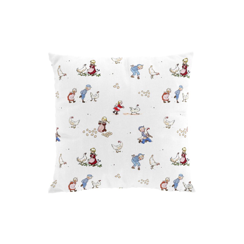 Emil & Ida i Hönsgården kuddfodral 47×47 cm naturvit