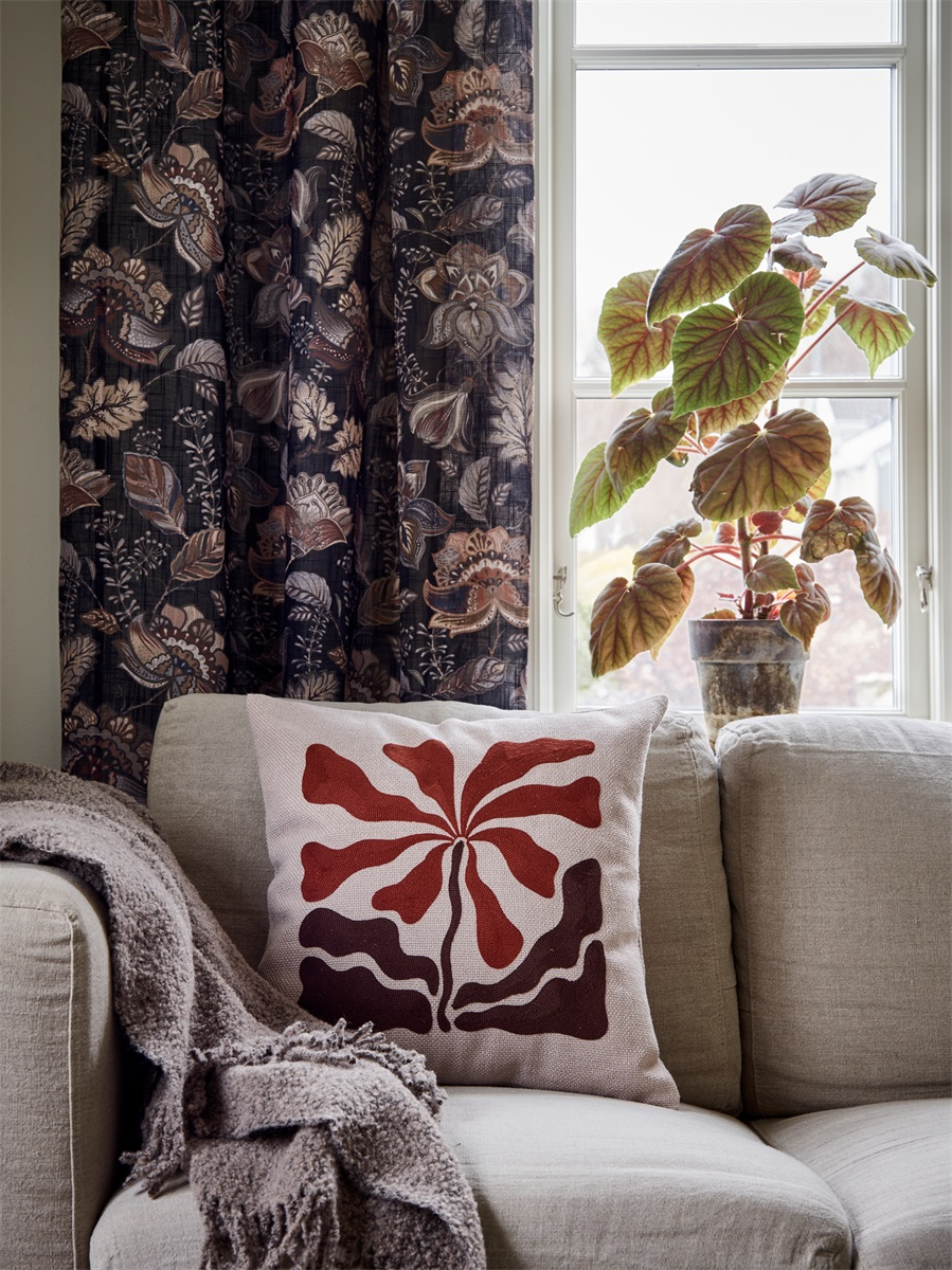 Jenna kuddfodral med måttet 45 x 45 cm, tillverkat i 100% polyester. Kuddfodralet har en enfärgad botten med en broderad blomma som ger ett dekorativt och mjukt uttryck.