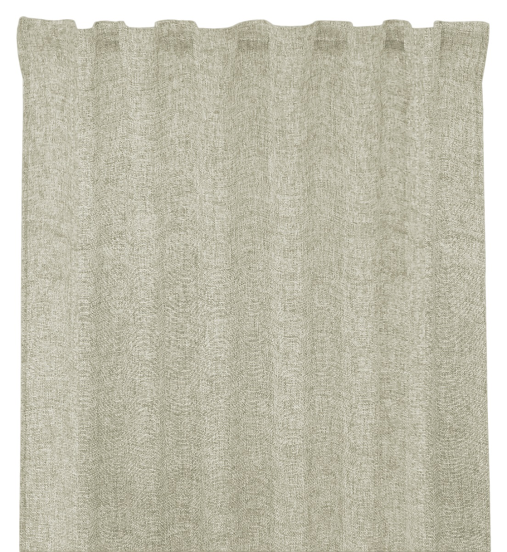 Det mörkläggande tyget är utformat för att minska ljusinsläpp och skapa en mer avskärmad miljö. Multibandsupphängningen ger flexibel montering och passar flera typer av gardinskenor och stänger. Nederkanten är overlockad för ett prydligt avslut.
